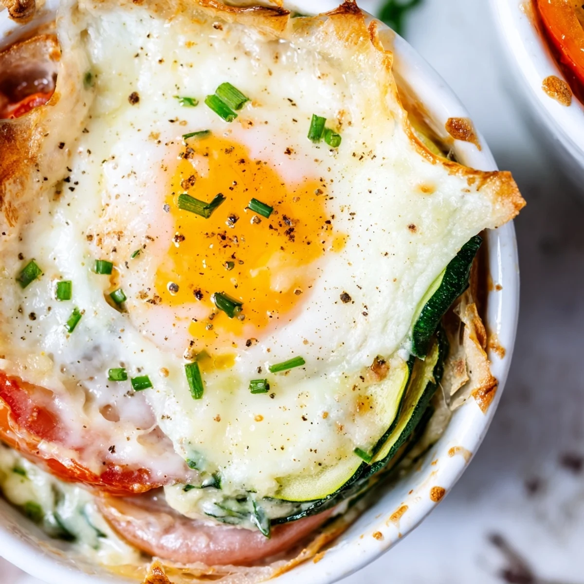 This elegant French-inspired preparation builds layers of fresh vegetables, ham, and rich Gruyère cheese sauce in individual ramekins, crowned with perfectly baked eggs. The dish combines sautéed spinach, sliced tomatoes, and zucchini with either ham or mushrooms for vegetarian options.